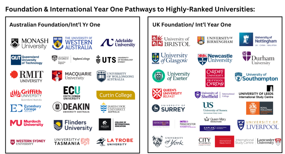 - Uni of Sydney Fdn /Taylor's College (World Top 100, Aus G8 Uni)