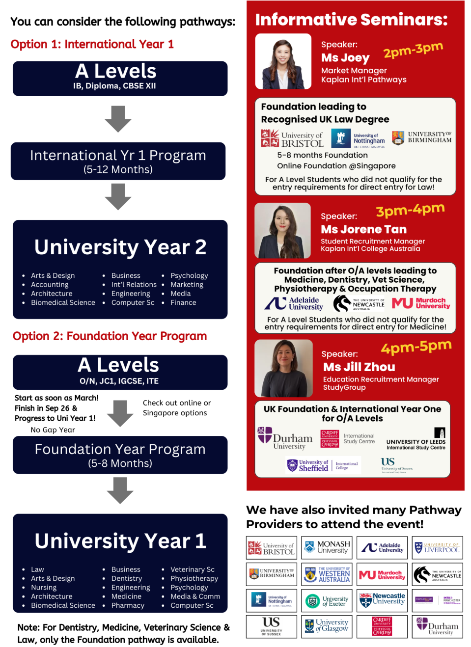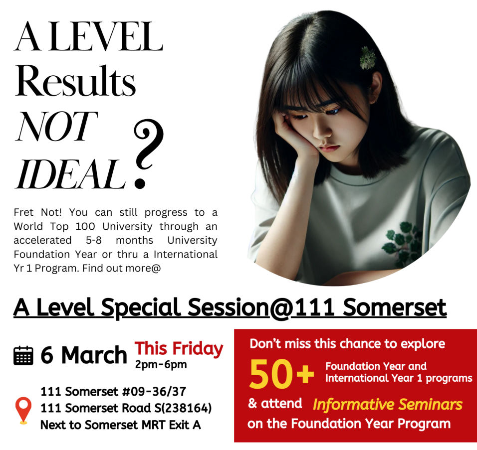 Fret Not! You can still have a second chance thru Foundation Programs or International Yr 1. Foundation Year Program is an fast-track option which leads you directly to the first year of university in just 5-8 months. Alternatively, an 8-month International Year One Program provides a direct path to the second year.